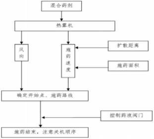 該技術(shù)利用熱霧機(jī)械啟動(dòng)后形成的高溫高壓氣體將農(nóng)藥及熱霧穩(wěn)定劑形成 含藥熱霧團(tuán),在目標(biāo)空間內(nèi)形成氣溶膠,當(dāng)靶標(biāo)接觸后達(dá)到病蟲(chóng)害防治效果。