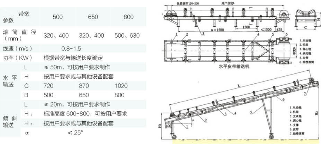 用途:帶式輸送機主要用來輸送顆粒或粉末狀固體,用于環(huán)保上主要用于輸送柵渣,脫水后的泥餅、泥沙等。